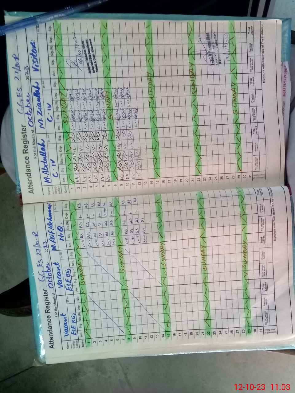 | CNIC | Full Name | Designation | R/C | Absence During Last Calender Month |