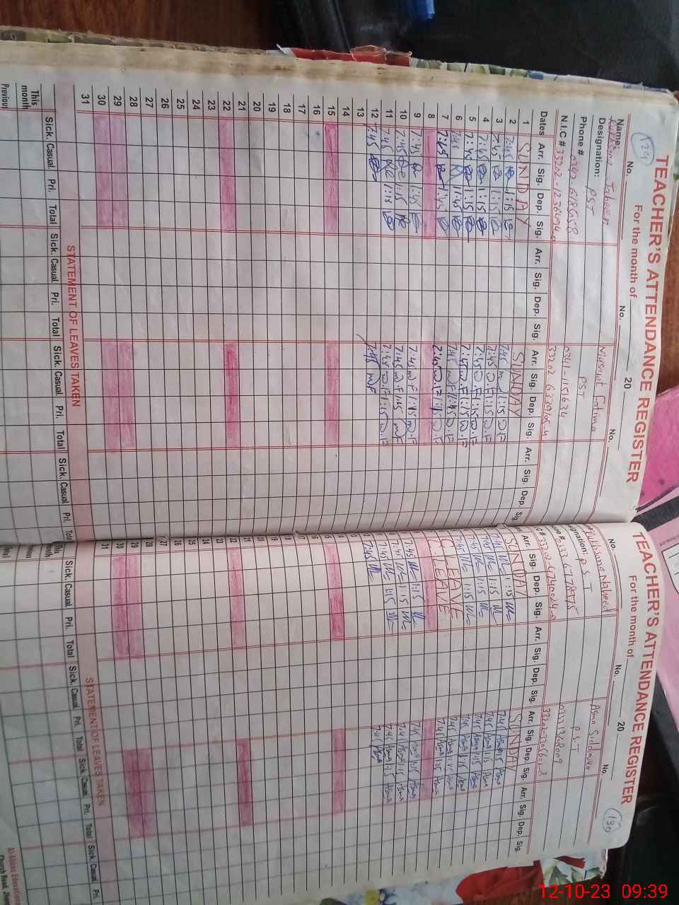 | CNIC | Full Name | Designation | R/C | Absence During Last Calender Month |