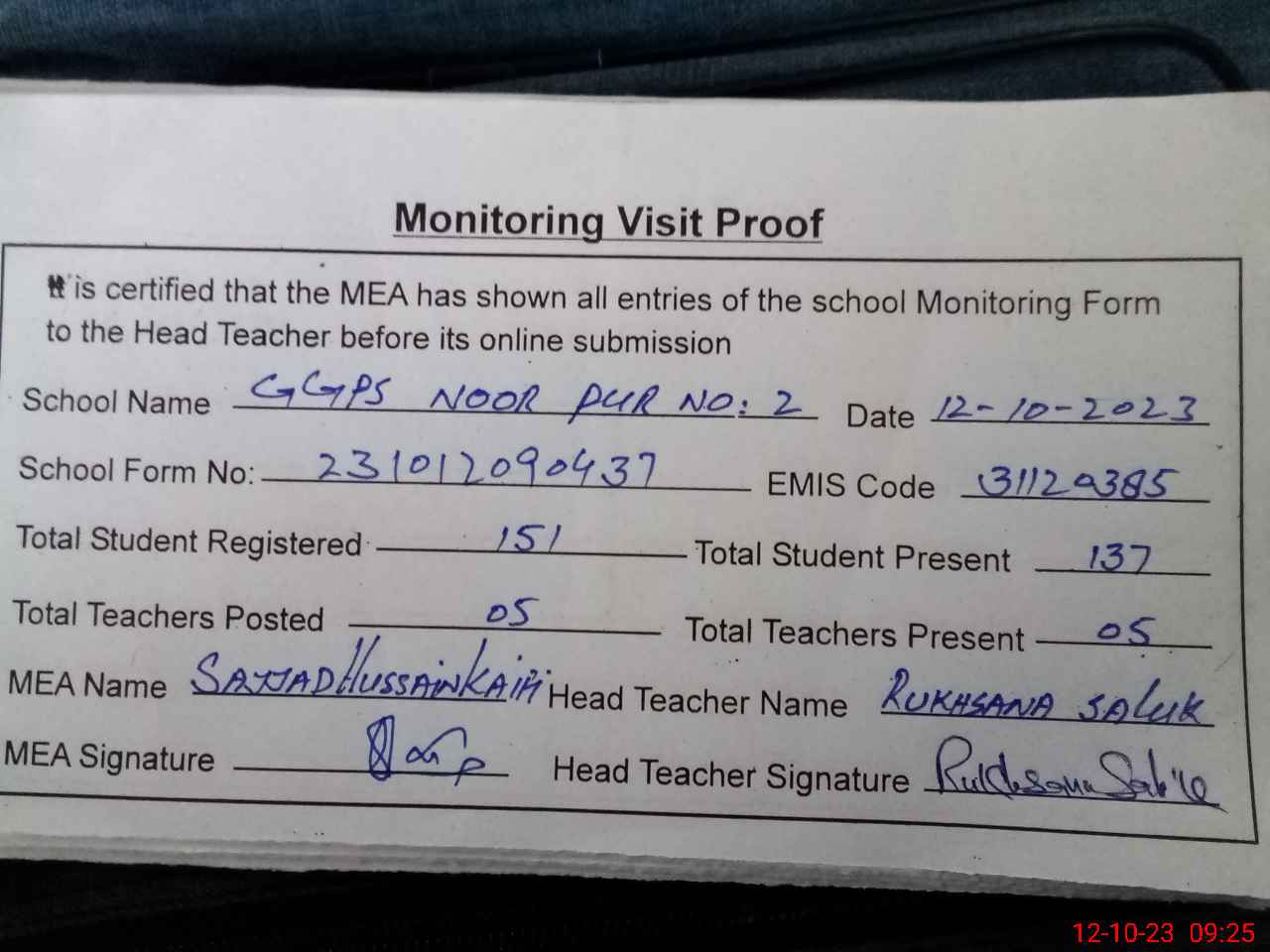 | EMIS Code: 31120385 | Name of School: GGPS NOOR PURA NO. 2 | |||