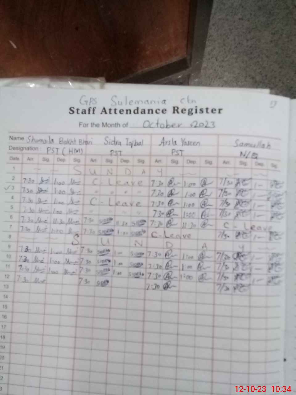 | Name: Sh**** Ba**** Bh**** Designation: (School Headmaster's/Headmistress's) PST Phone/Cell Number: 03**** |