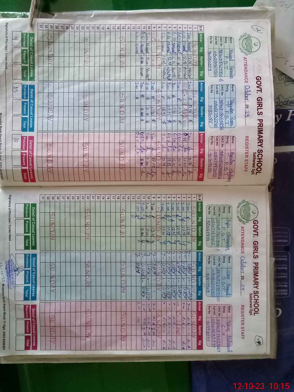 | CNIC | Full Name | Designation | R/C | Absence During Last Calender Month |