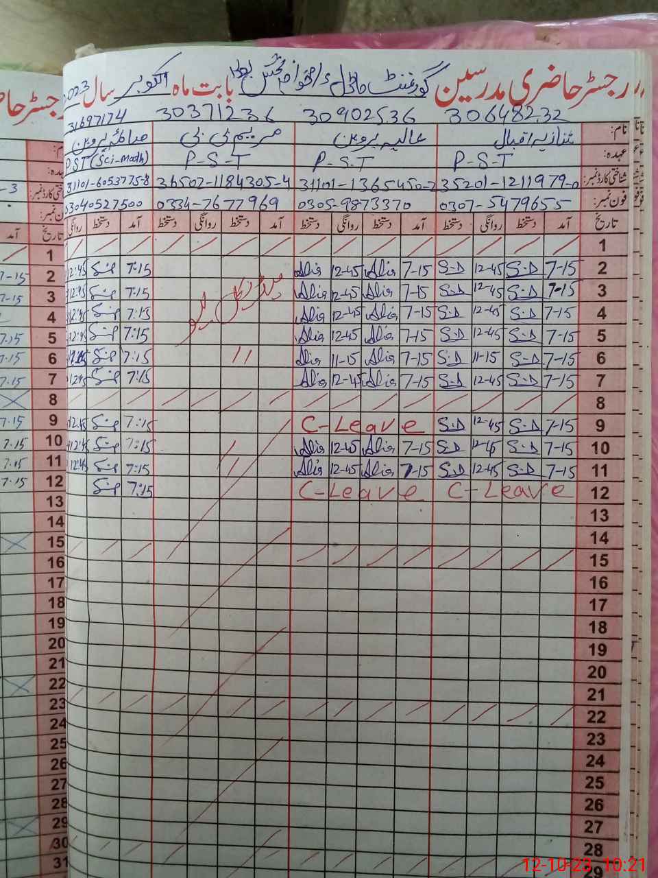 | Remarks (Use Separate Page if Required): Teacher Maryum bibi approved medical leave letter or soft form not present | |||||