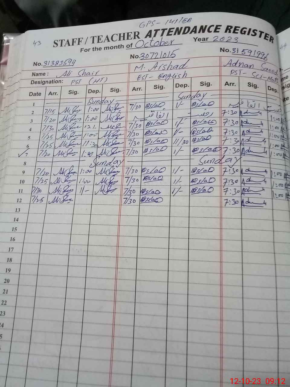 | Name: AL**** SH**** Designation: (School Headmaster's/Headmistress's) PST Phone/Cell Number: 03**** |