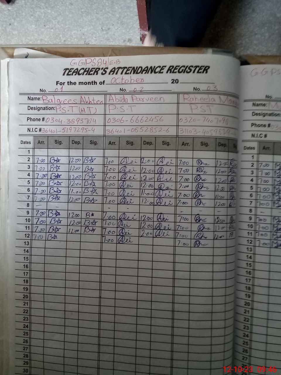 | Name: BA**** AK**** Designation: (School Headmaster's/Headmistress's) PST Phone/Cell Number: 03**** |