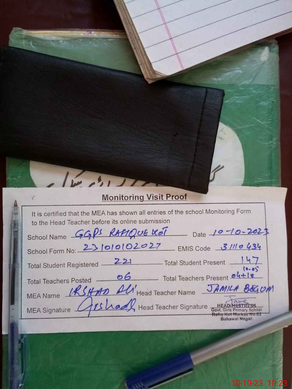 | EMIS Code: 31110434 | Name of School: GGPS RAFIQ KOT | |||