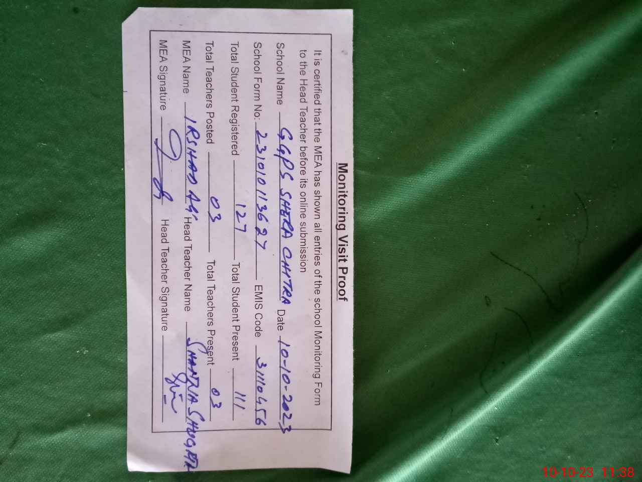 | EMIS Code: 31110456 | Name of School: GGPS SHERA CHITRA | |||