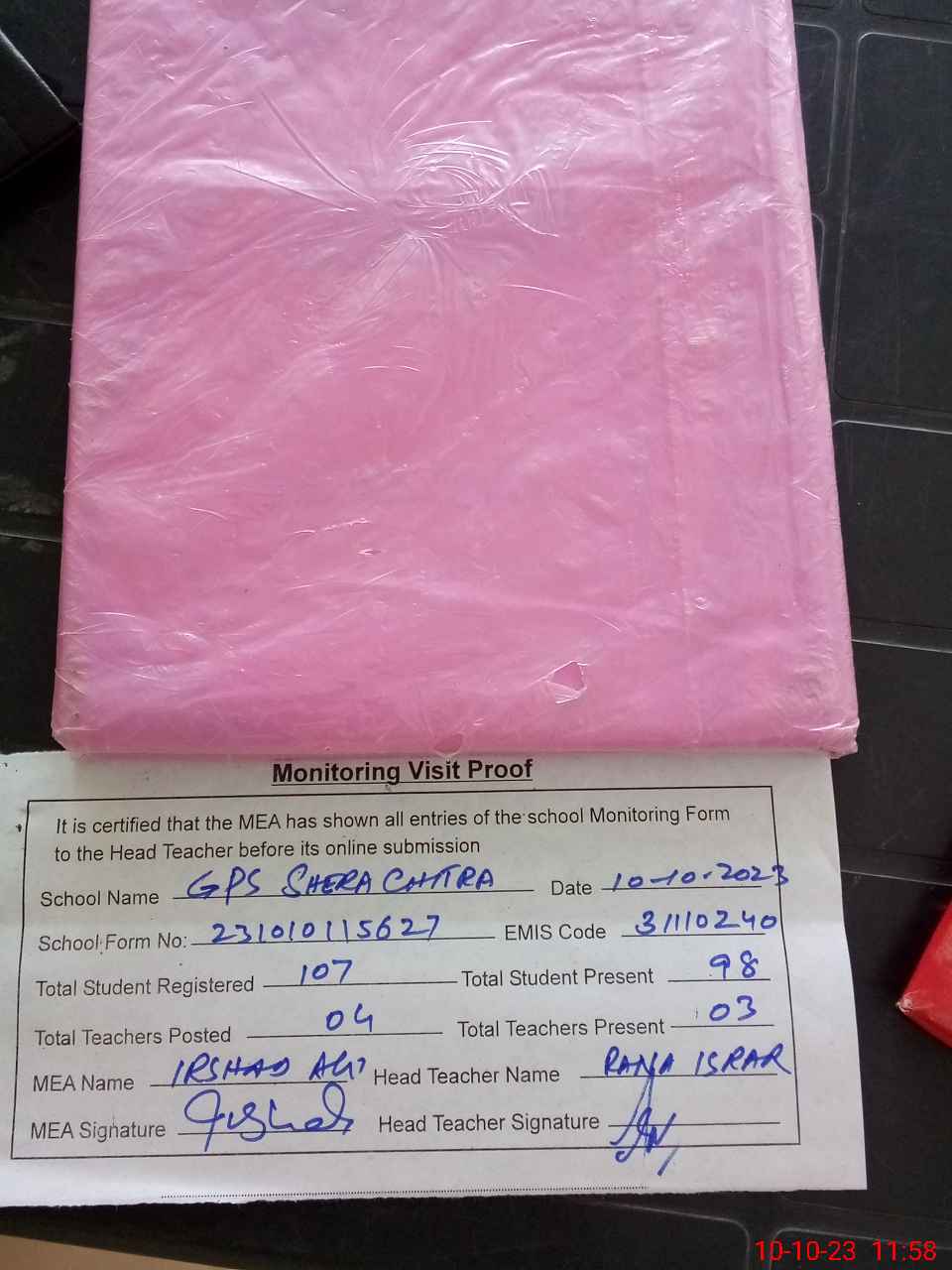| Attendance Register | Head Teacher | MEA with School | Visit Proof |
