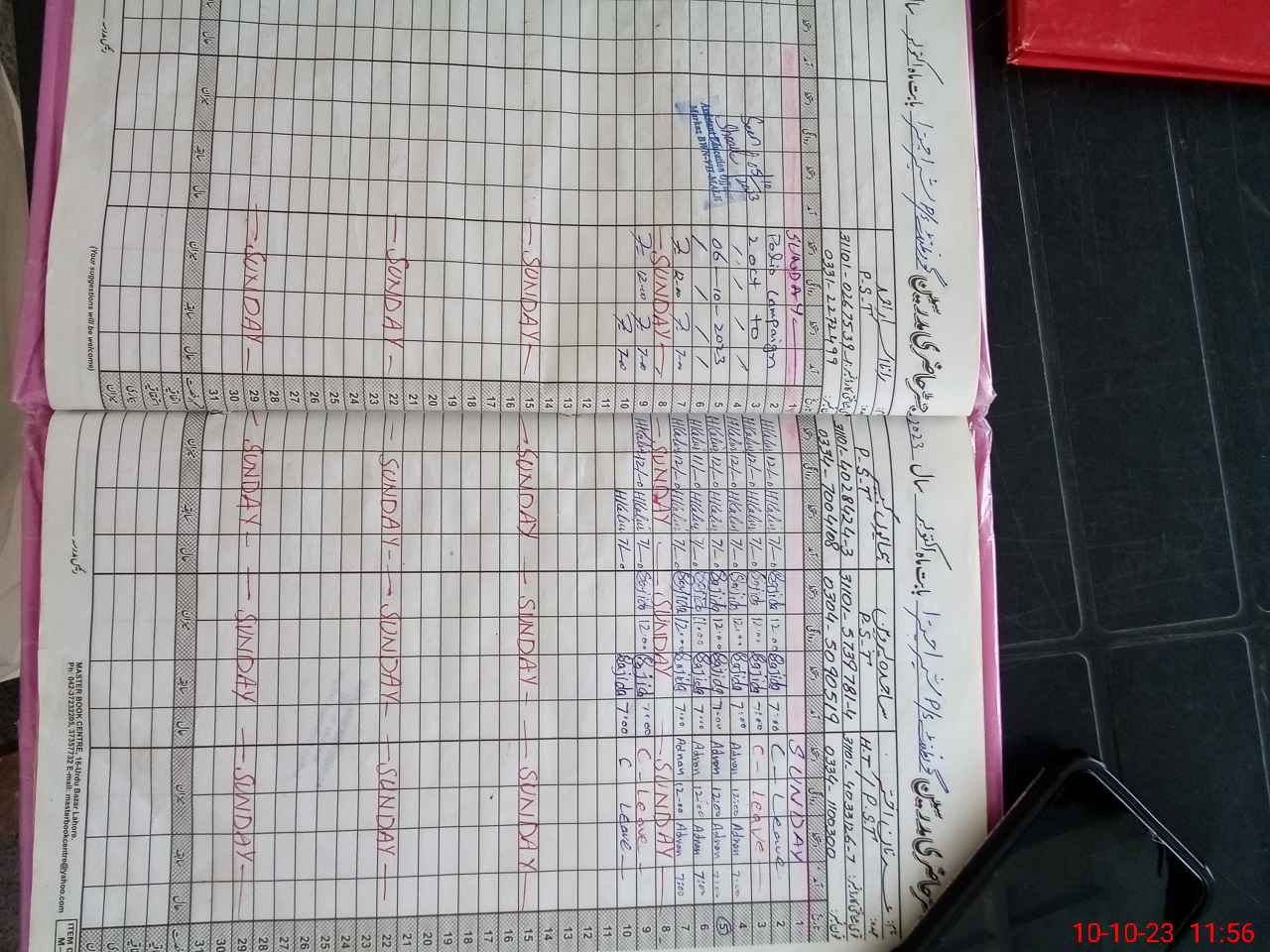 | CNIC | Full Name | Designation | R/C | Absence During Last Calender Month |