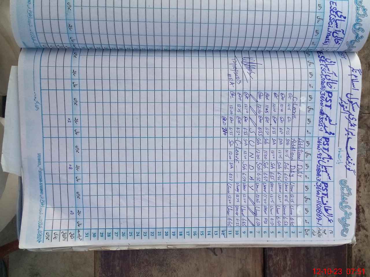 | Name: UM**** AL**** Designation: (School Headmaster's/Headmistress's) PST Phone/Cell Number: 03**** |