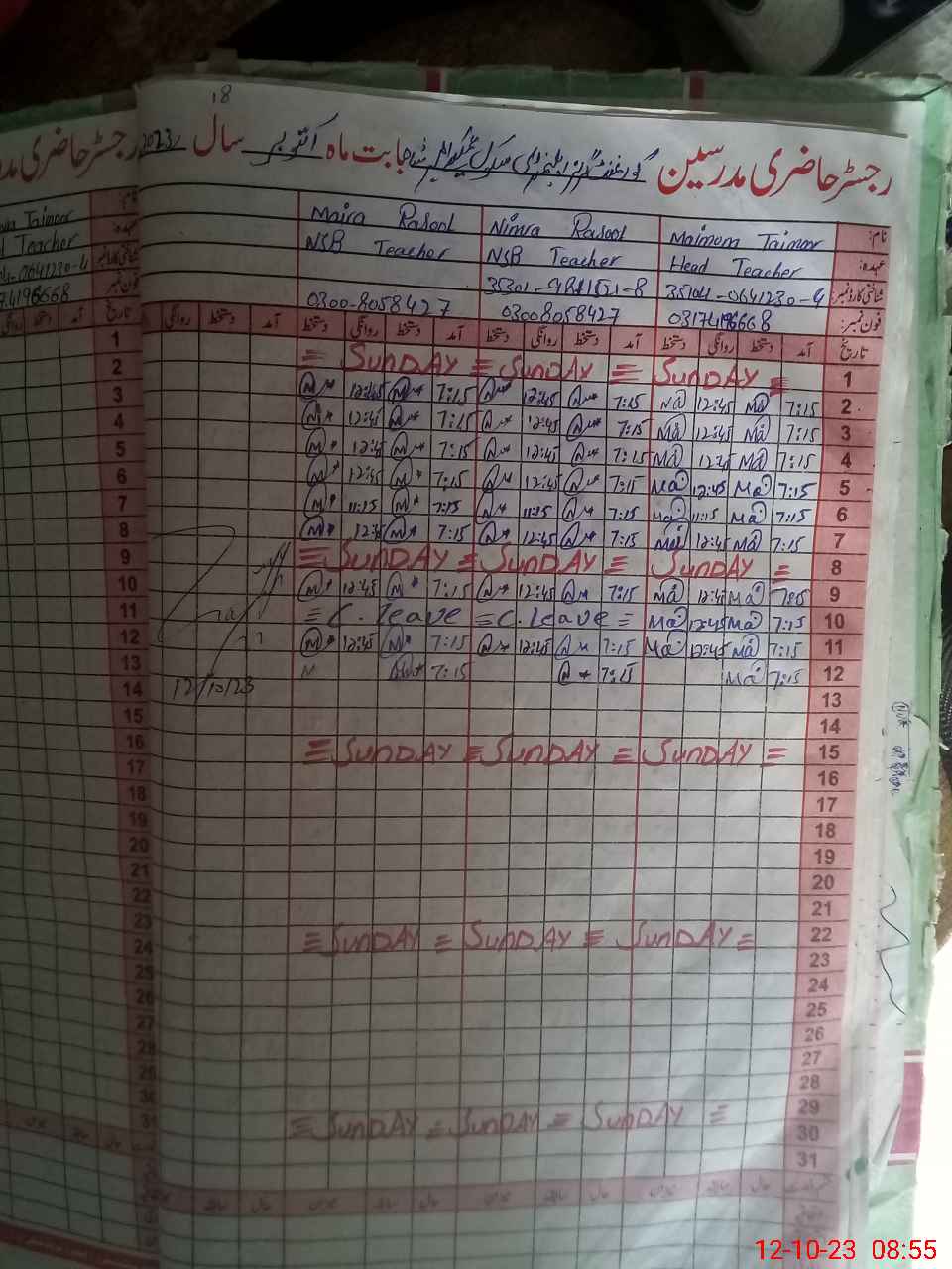 | CNIC | Full Name | Designation | R/C | Absence During Last Calender Month |