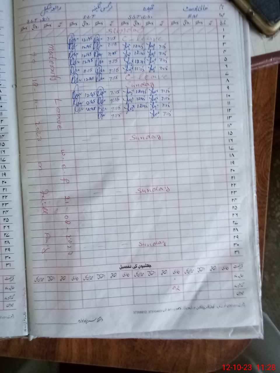 | CNIC | Full Name | Designation | R/C | Absence During Last Calender Month |