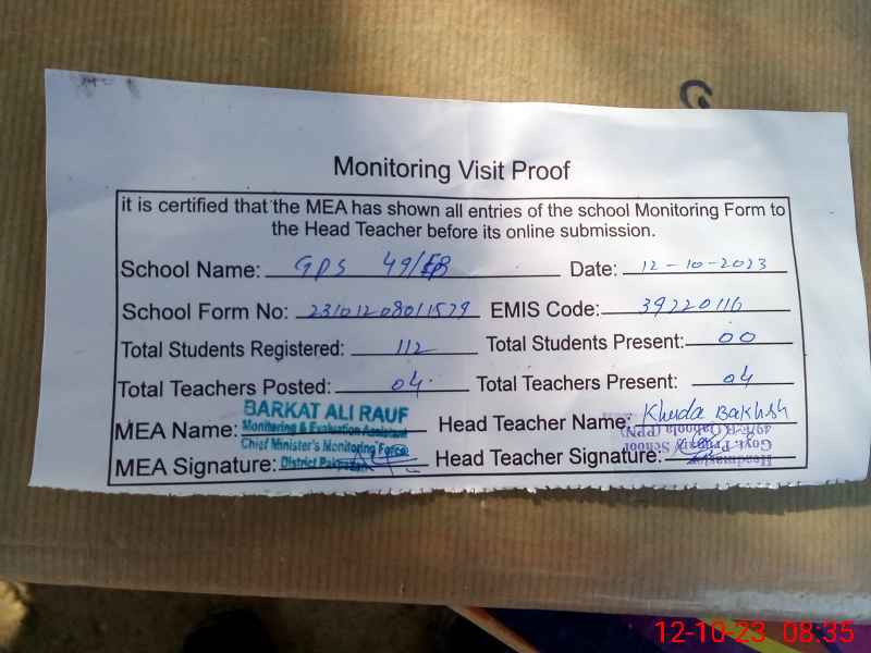 | EMIS Code: 39220116 | Name of School: GPS 49 EB | |||