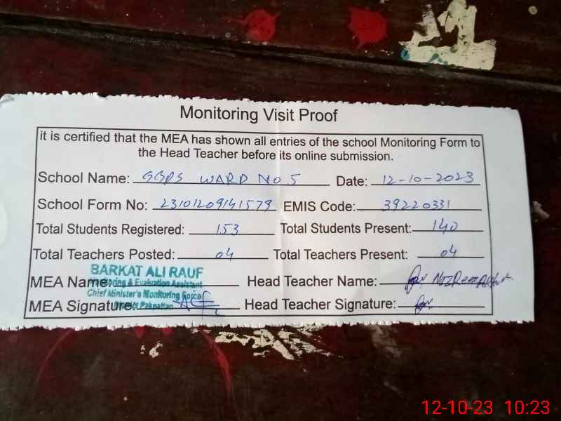 | EMIS Code: 39220331 | Name of School: GGPS WARD NO 5 | |||