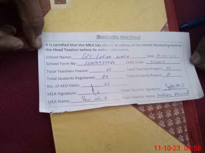 | EMIS Code: 31310123 | Name of School: GPS LALOO WALA | |||