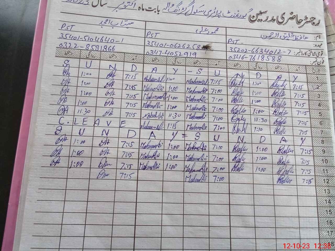 | Name: Ha**** Kh**** UrRe**** Designation: (School Headmaster's/Headmistress's) PST Phone/Cell Number: 03**** |