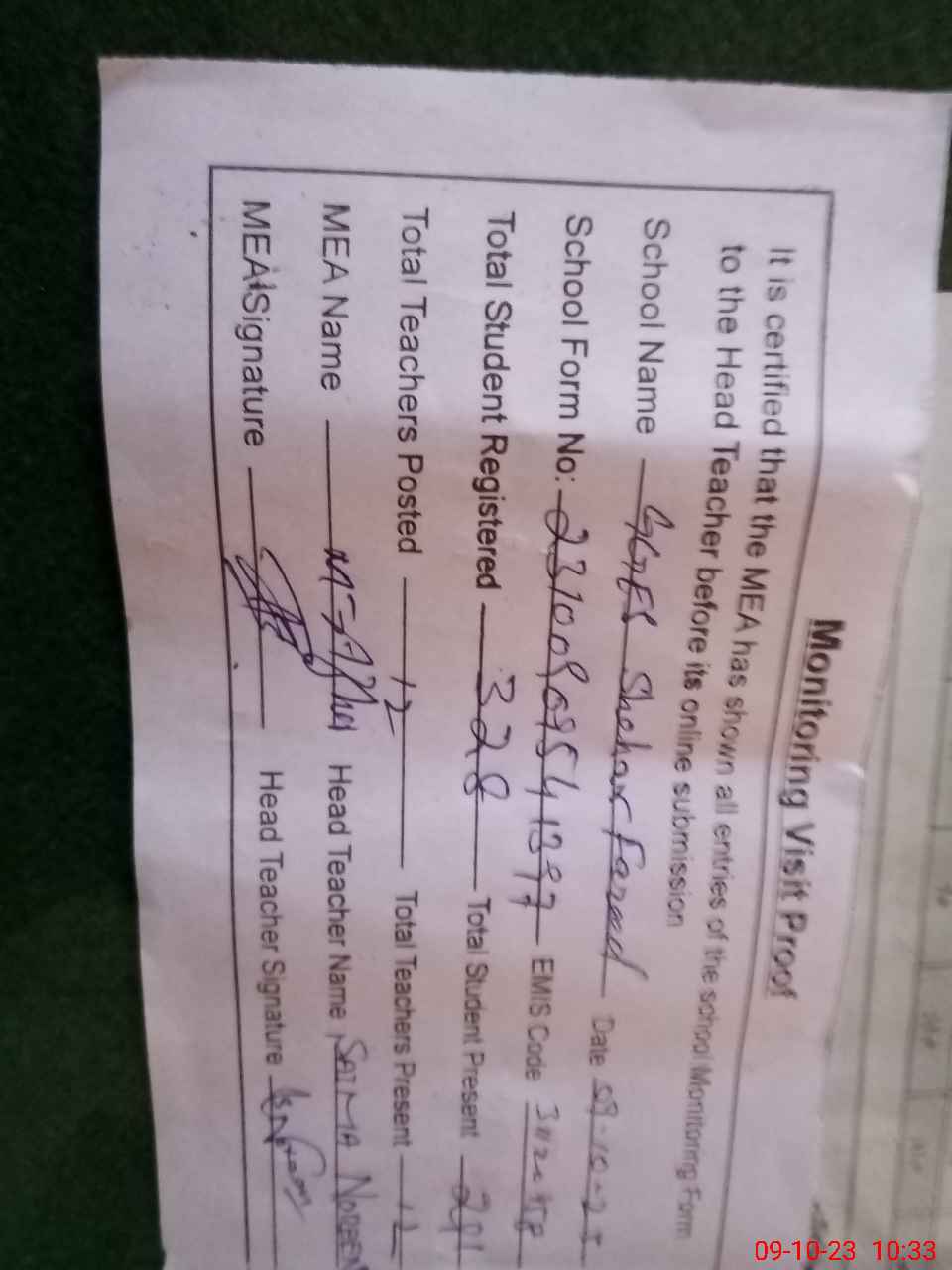 | EMIS Code: 31120458 | Name of School: GGES SHEHAR FAREED | |||