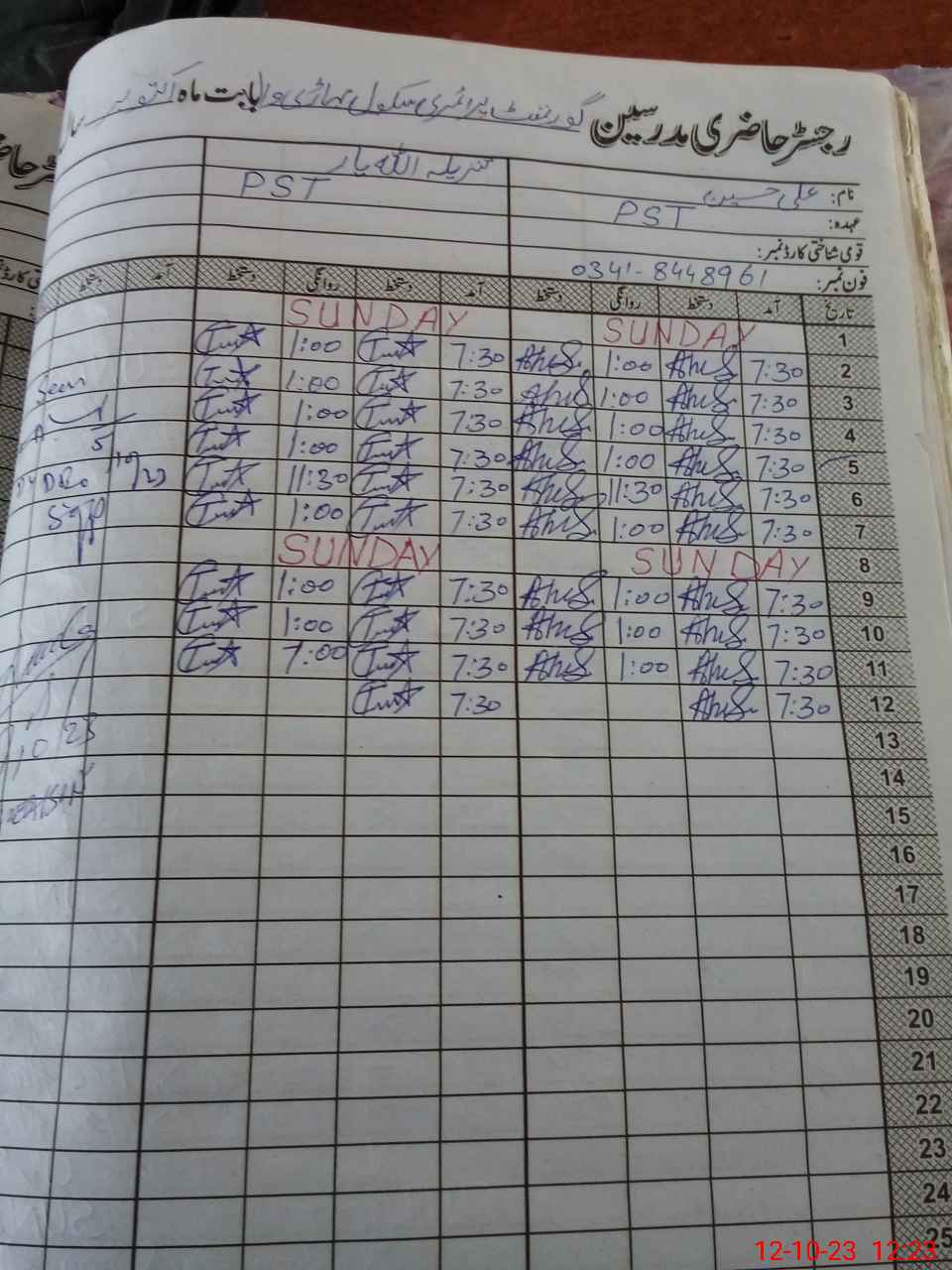 | CNIC | Full Name | Designation | R/C | Absence During Last Calender Month |