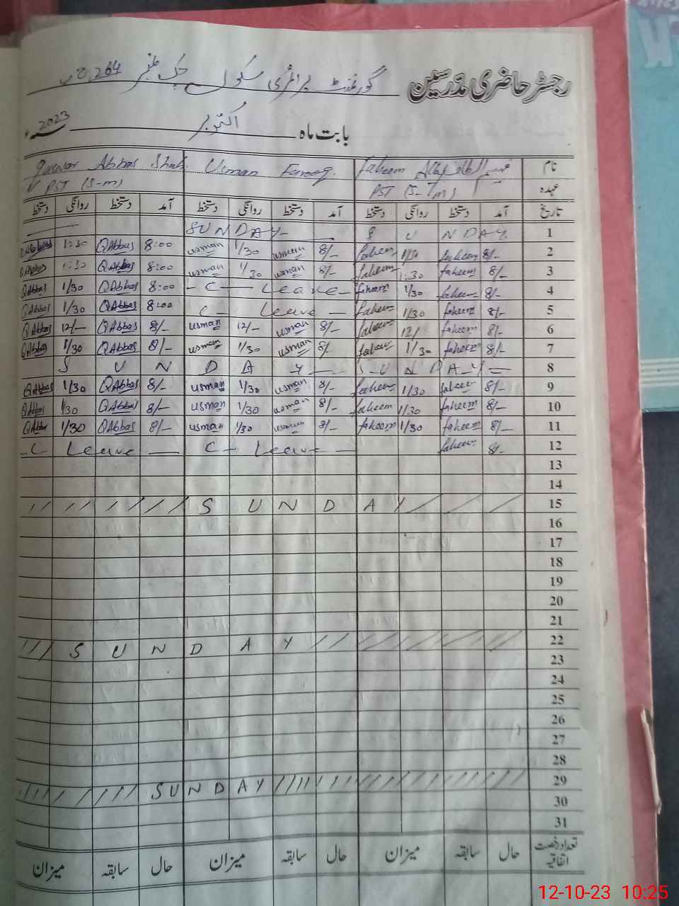 | CNIC | Full Name | Designation | R/C | Absence During Last Calender Month |