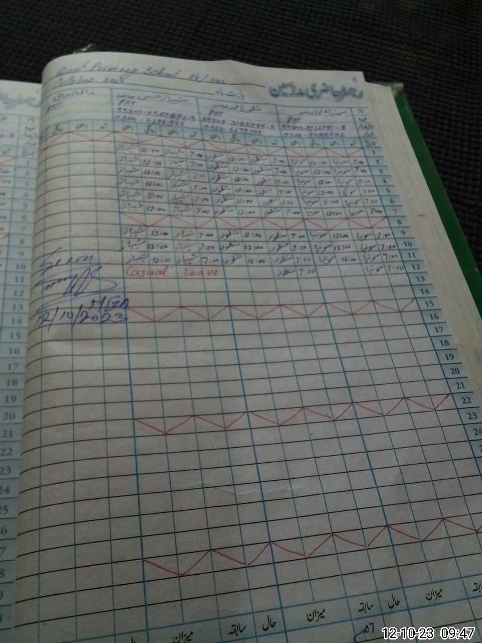 | CNIC | Full Name | Designation | R/C | Absence During Last Calender Month |