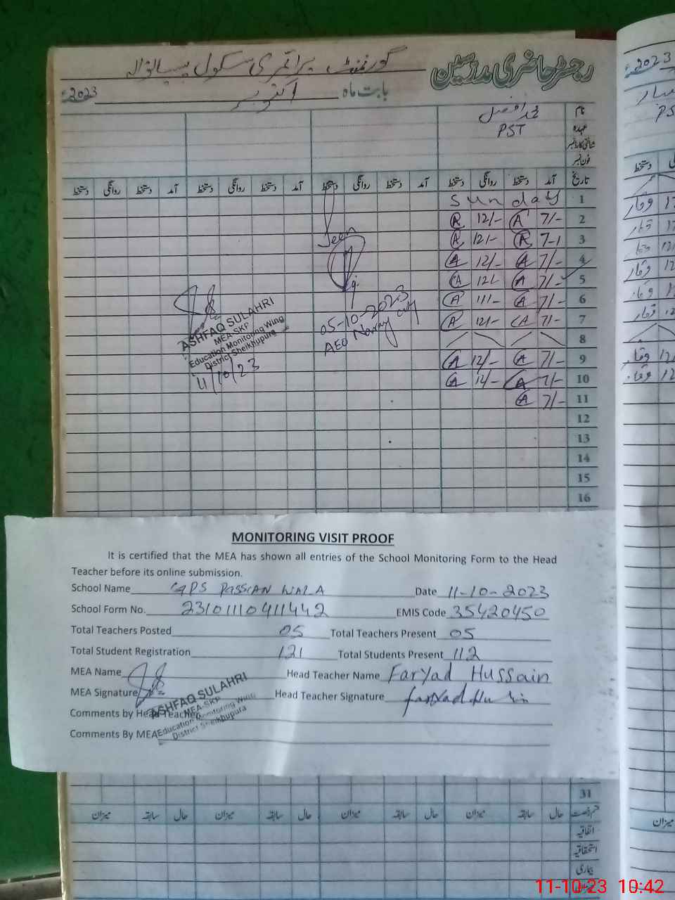 | EMIS Code: 35420450 | Name of School: GPS PASSIAN WALA | |||