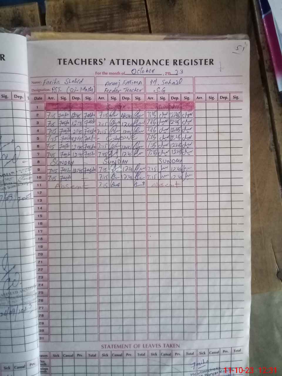 | 35**** | Mu**** So**** | SG | Regular | 0 | 0 | 7 | 0 | 0 | 0 | 0 | 0 | 0 | Absent (Un-Authorized) |