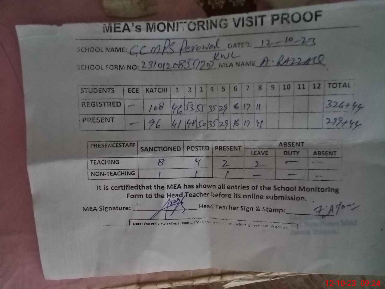 | EMIS Code: 36420412 | Name of School: GPS MODEL PEROWAL, KHANEWAL | |||