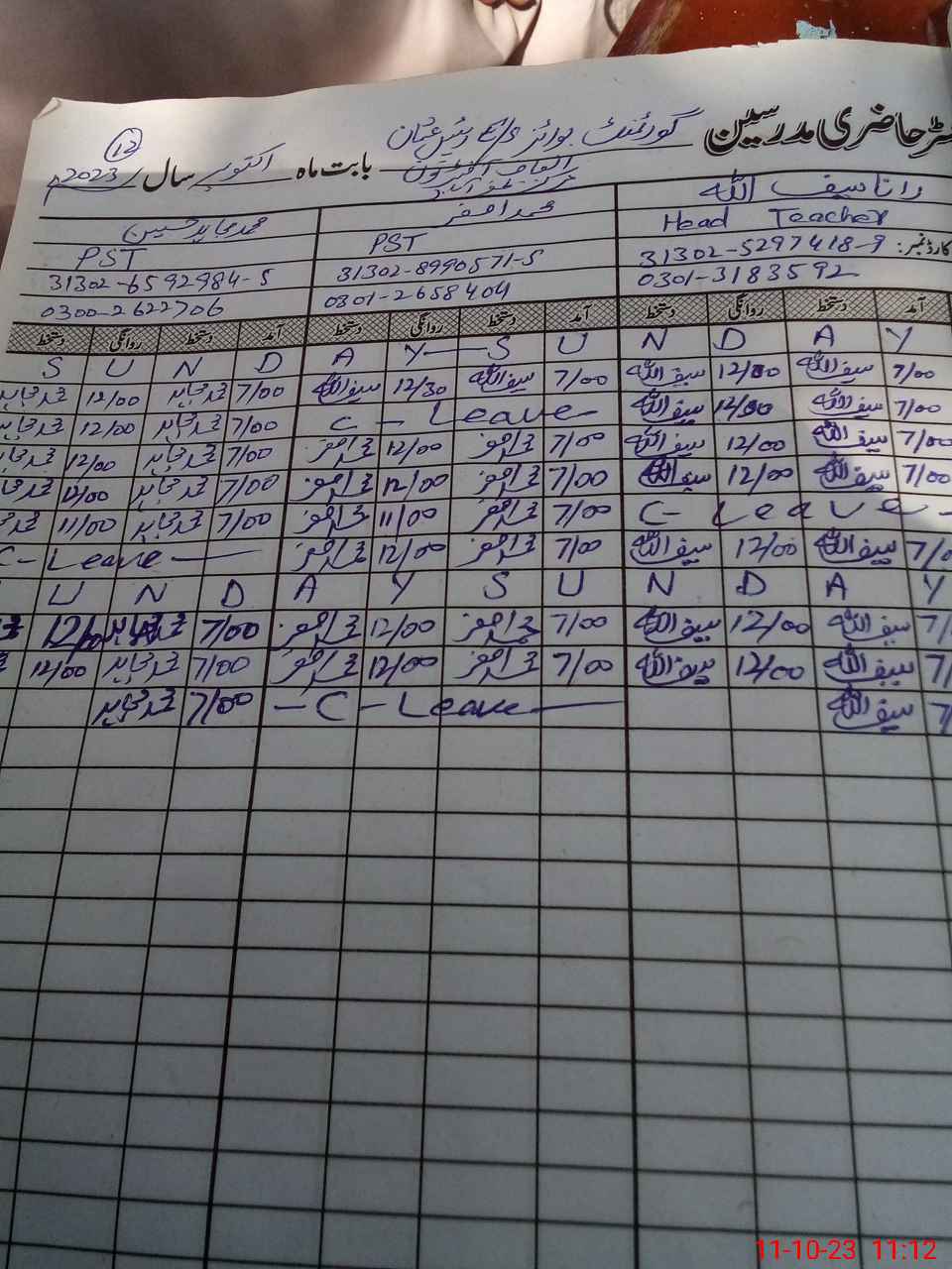 | Name: Ra**** Sa**** Designation: (School Headmaster's/Headmistress's) PST Phone/Cell Number: 03**** |
