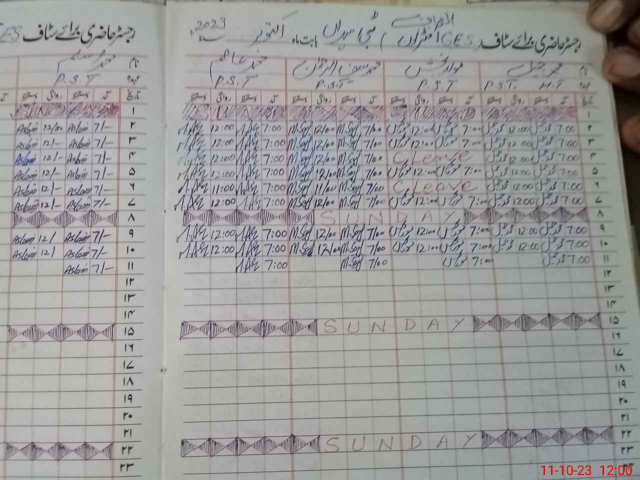 | CNIC | Full Name | Designation | R/C | Absence During Last Calender Month |