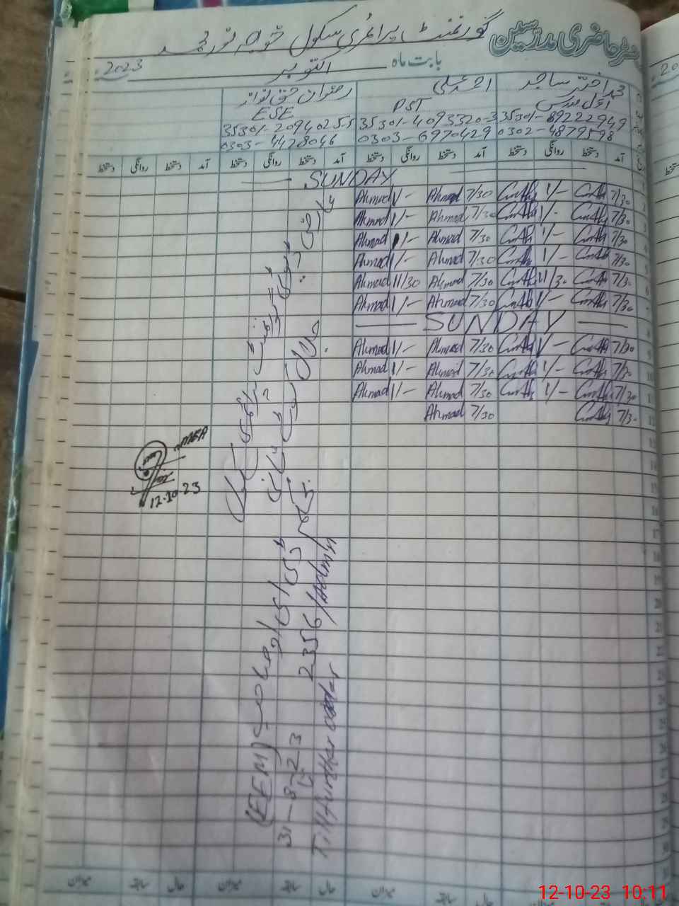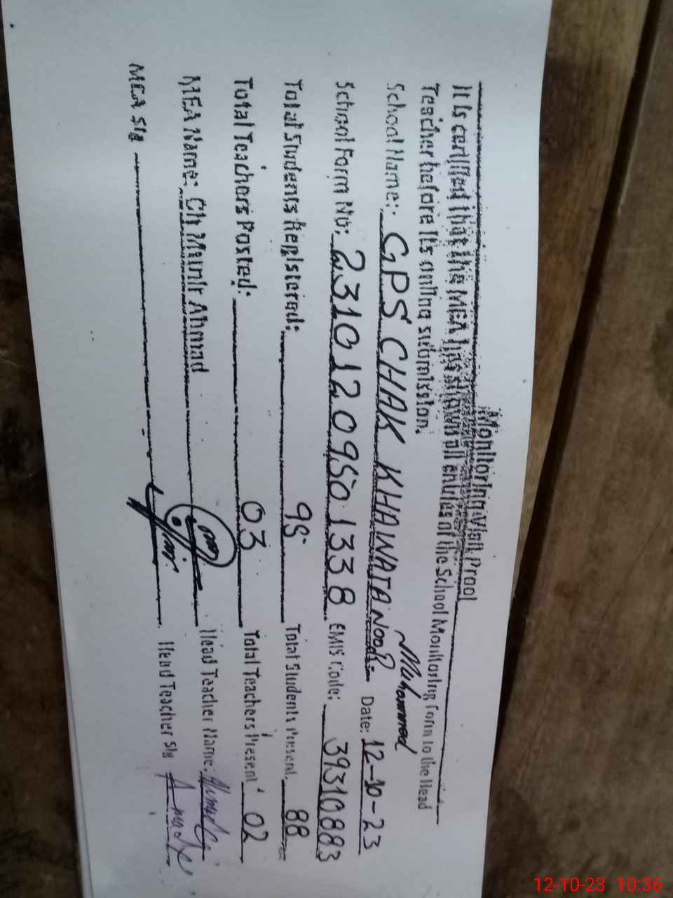 | Name: AH**** AL**** Designation: (School Headmaster's/Headmistress's) PST Phone/Cell Number: 03**** |