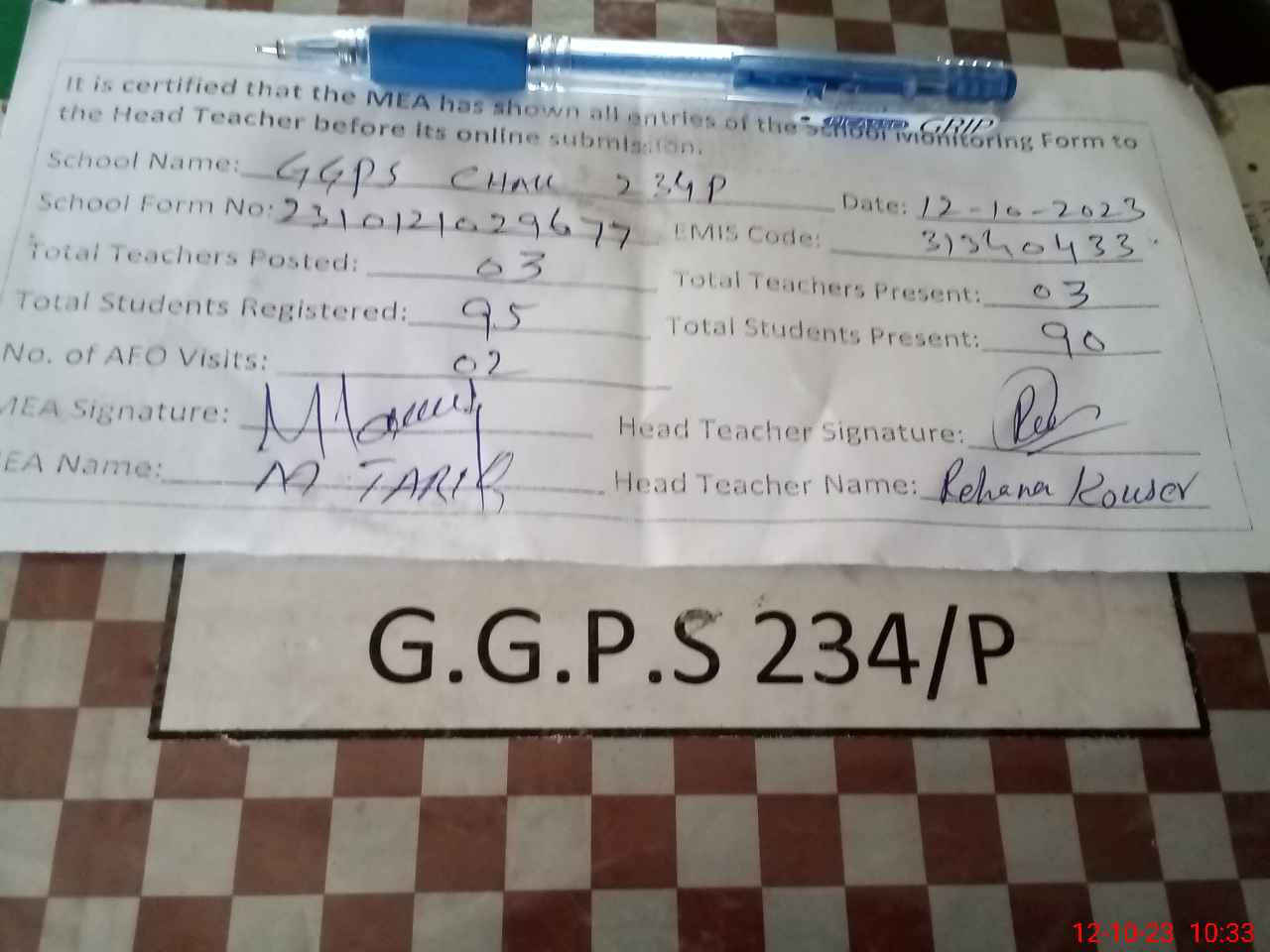 | EMIS Code: 31340433 | Name of School: GGPS CHAK NO. 234/P | |||