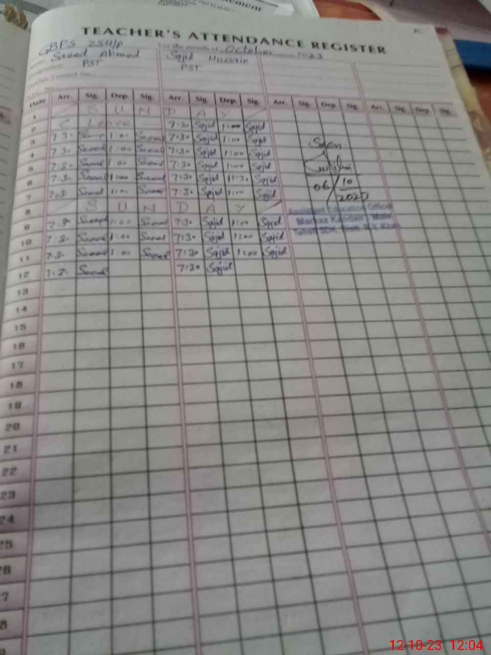 | Name: Sa**** Ah**** Designation: (School Headmaster's/Headmistress's) PST Phone/Cell Number: 03**** |