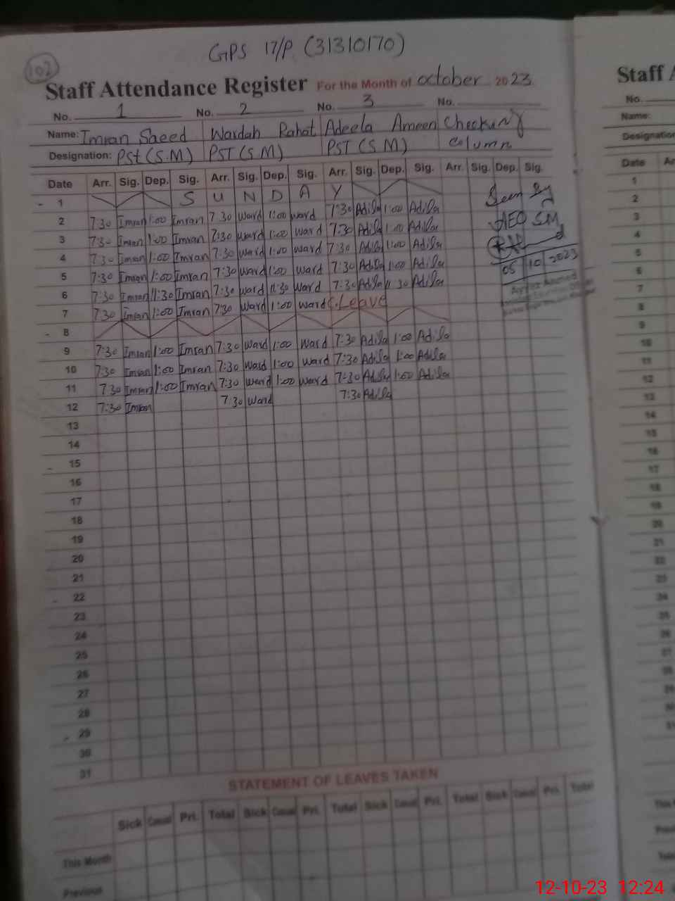 | Leave | Duty | Absent | Maternity | Medical | Ex- Pak |