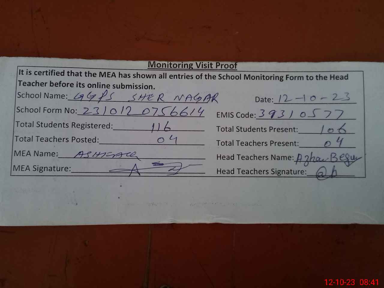 | EMIS Code: 39310577 | Name of School: GGPS SHER NAGAR | |||