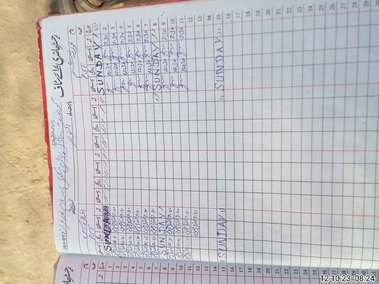 | CNIC | Full Name | Designation | R/C | Absence During Last Calender Month |