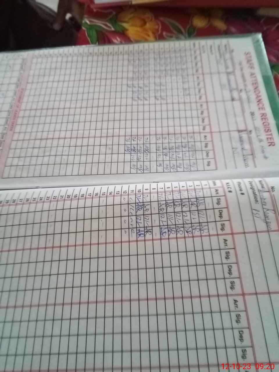 | CNIC | Full Name | Designation | R/C | Absence during last cal. month |