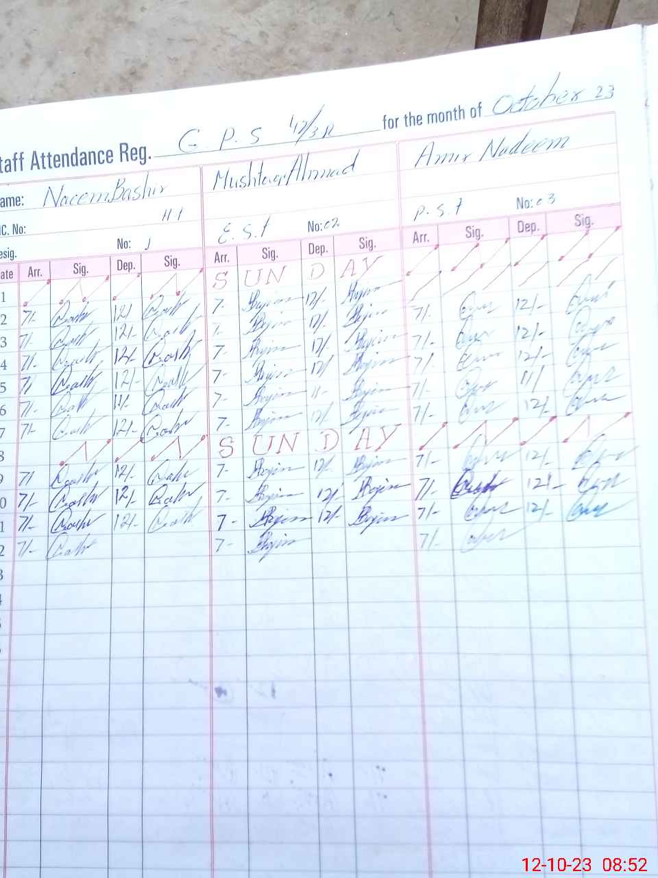 | CNIC | Full Name | Designation | R/C | Absence during last cal. month |