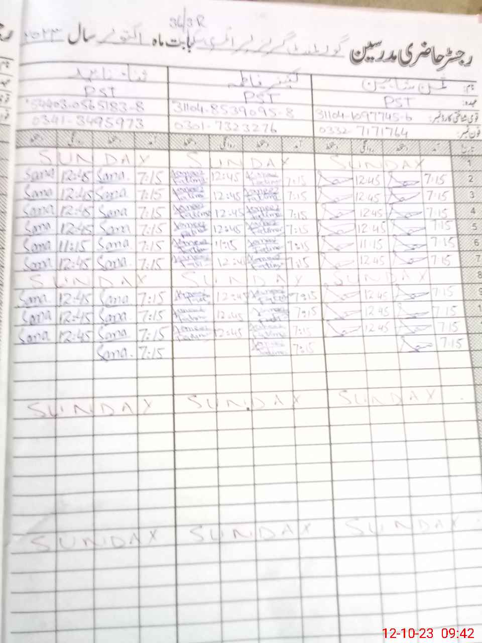 | Name: Sa**** Na**** Designation: (School Headmaster's/Headmistress's) PST Phone/Cell Number: 03**** |