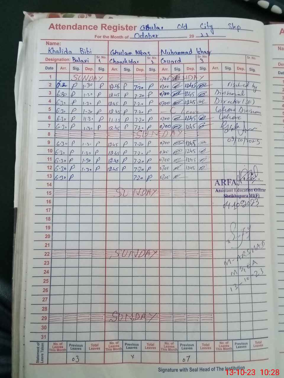 | Name: AQ**** AN**** Designation: (School Headmaster's/Headmistress's) SST PHY Phone/Cell Number: 03**** |