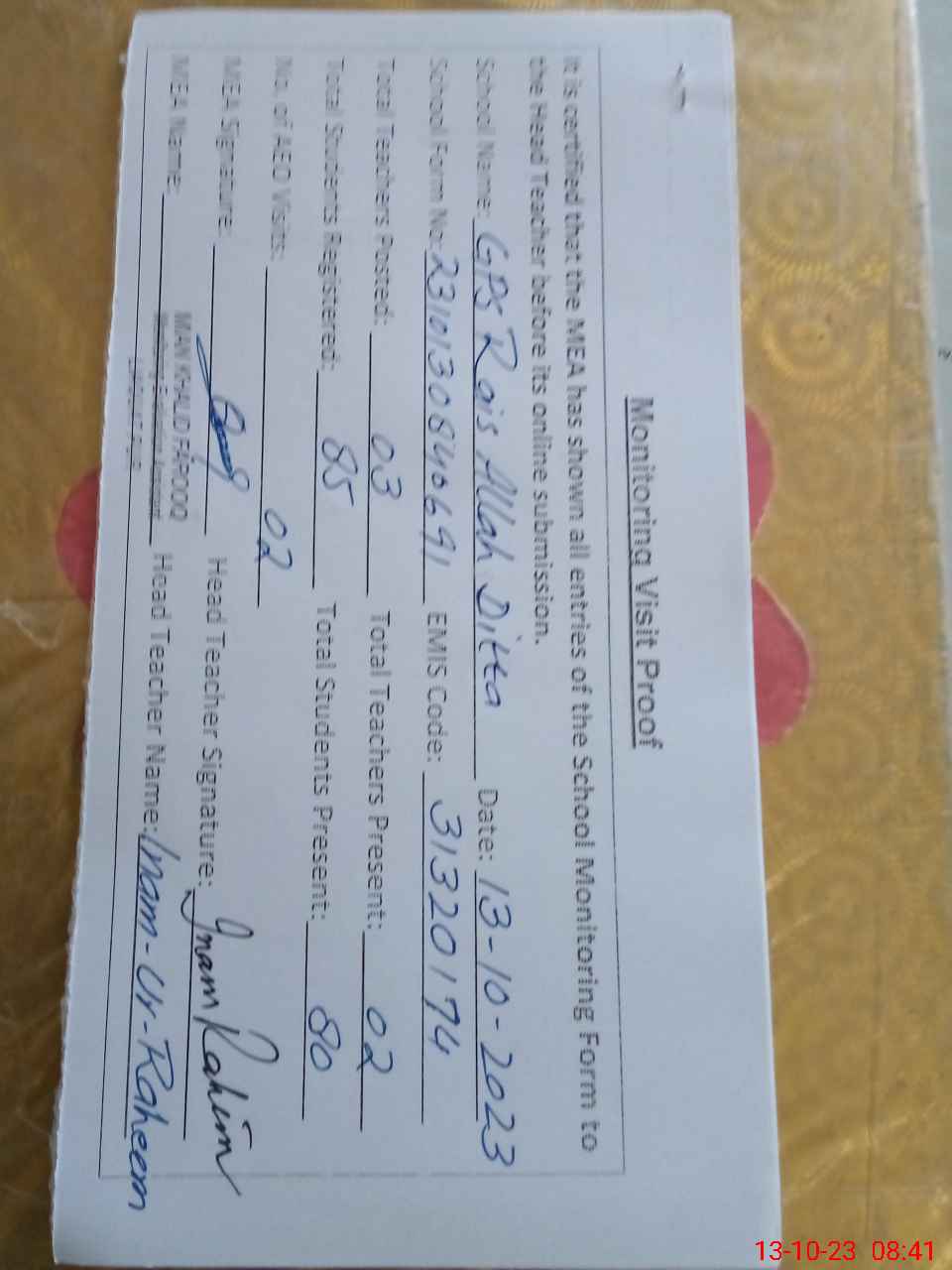 | EMIS Code: 31320174 | Name of School: GPS RAIS ALLAH DITTA | |||