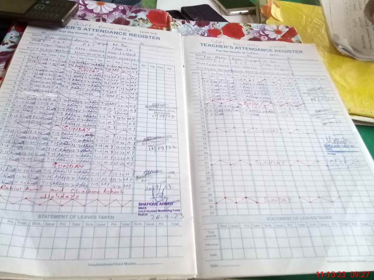 | Name: Ri**** Ak**** Designation: (School Headmaster's/Headmistress's) PST/PTC/JV Phone/Cell Number: 03**** |