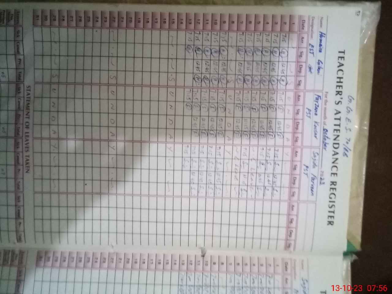 | Name: HU**** GI**** Designation: (School Headmaster's/Headmistress's) EST G Phone/Cell Number: 03**** |