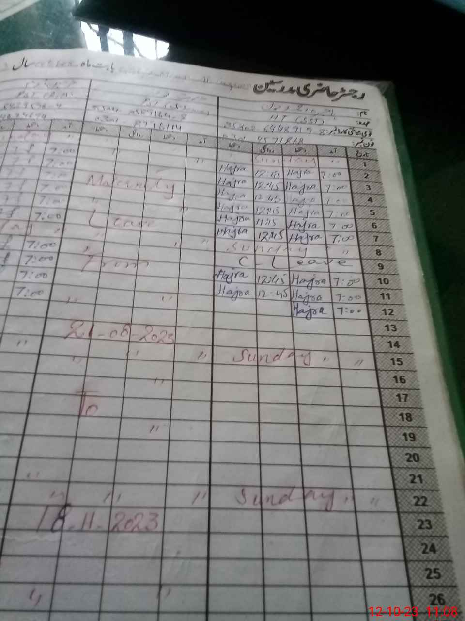 | CNIC | Full Name | Designation | R/C | Absence During Last Calender Month |