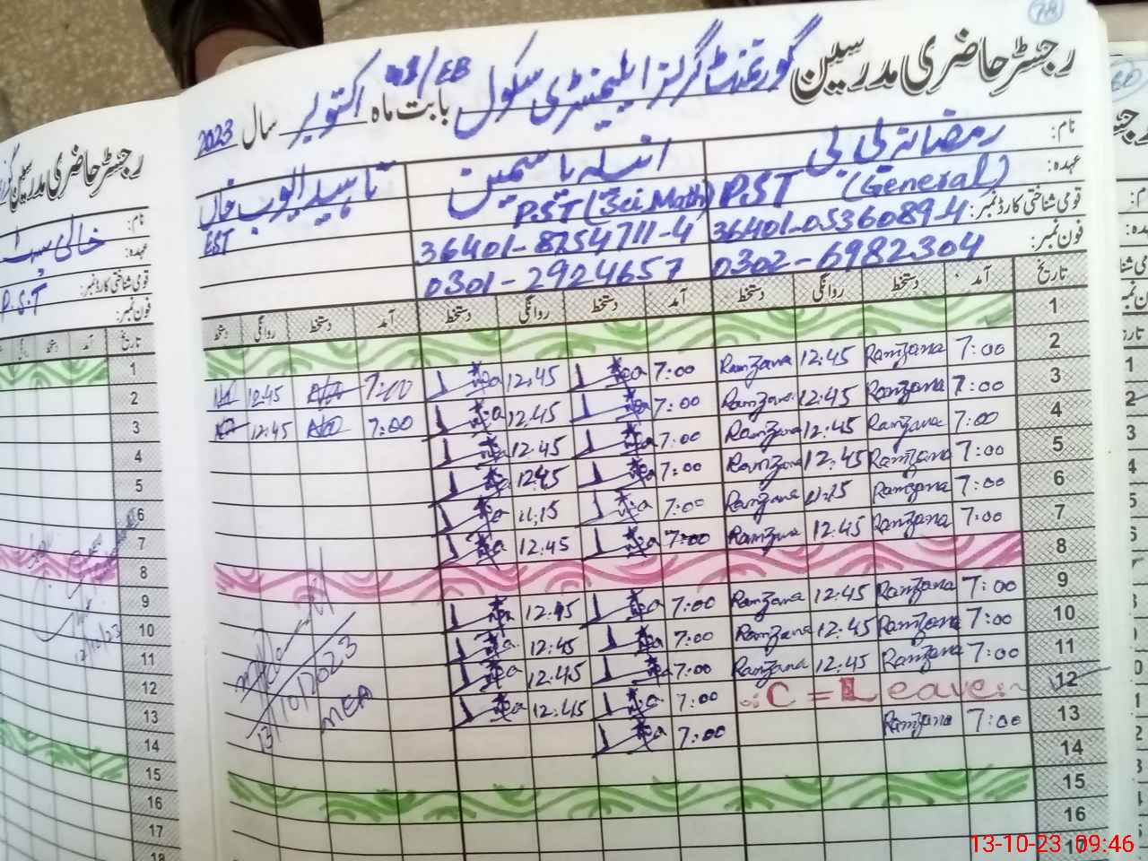 | Name: JA**** RA**** Designation: (School Headmaster's/Headmistress's) SST (GENERAL) Phone/Cell Number: 03**** |