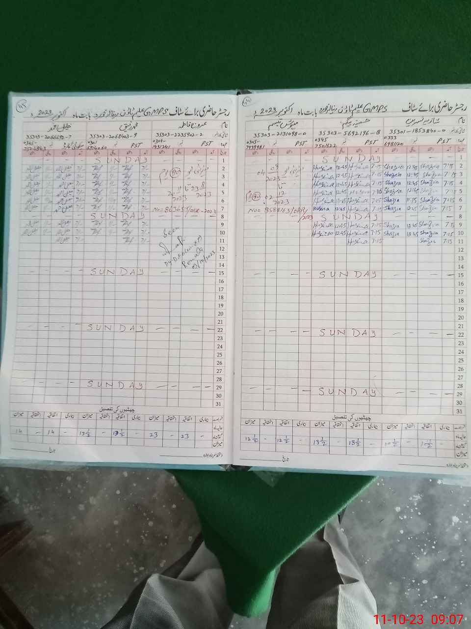 | Monitoring Date: 11-10-2023 | Start Time: 11-10-2023 08:02 AM | End Time: 11-10-2023 09:09 AM | Name of MEA: SA**** HU**** (R**** | |