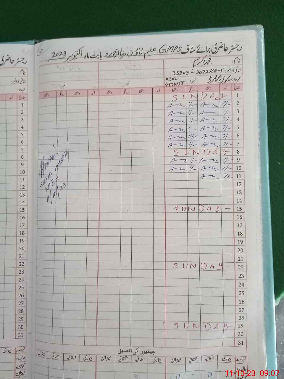 | Name: GH**** FA**** Designation: (School Headmaster's/Headmistress's) PST/PTC/JV Phone/Cell Number: 03**** |