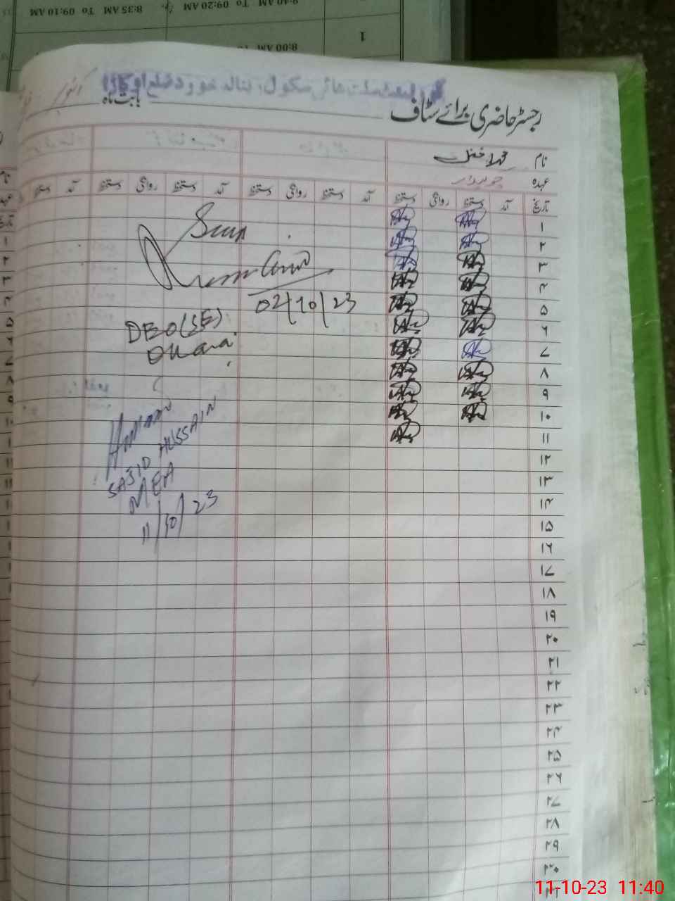 | CNIC | Full Name | Designation | R/C | Absence During Last Calender Month |
