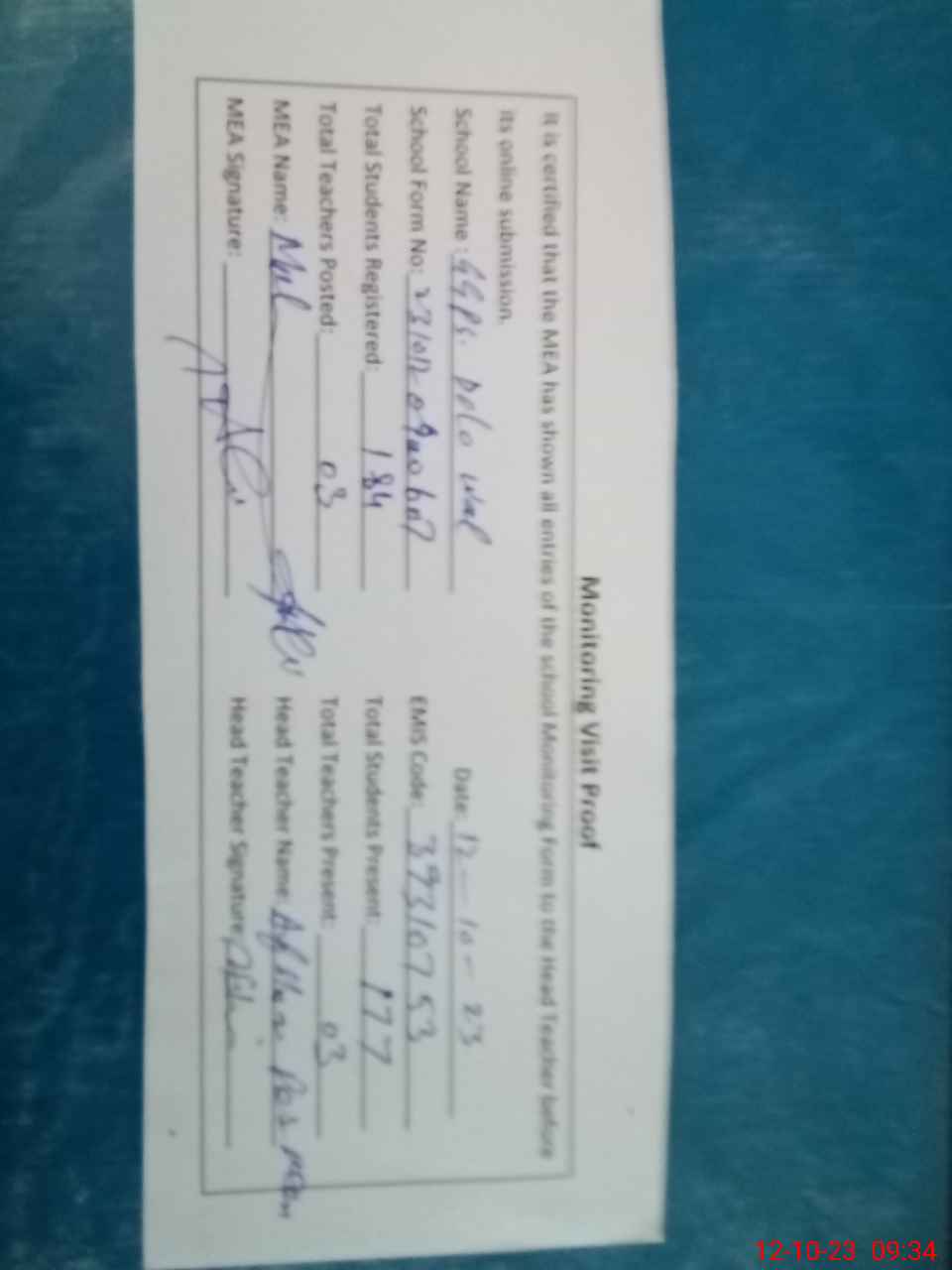 | Certified that this School was Inspected by the Undersigned MEA/DMO Today and the Information Stated Above is as Per Record. | |||||