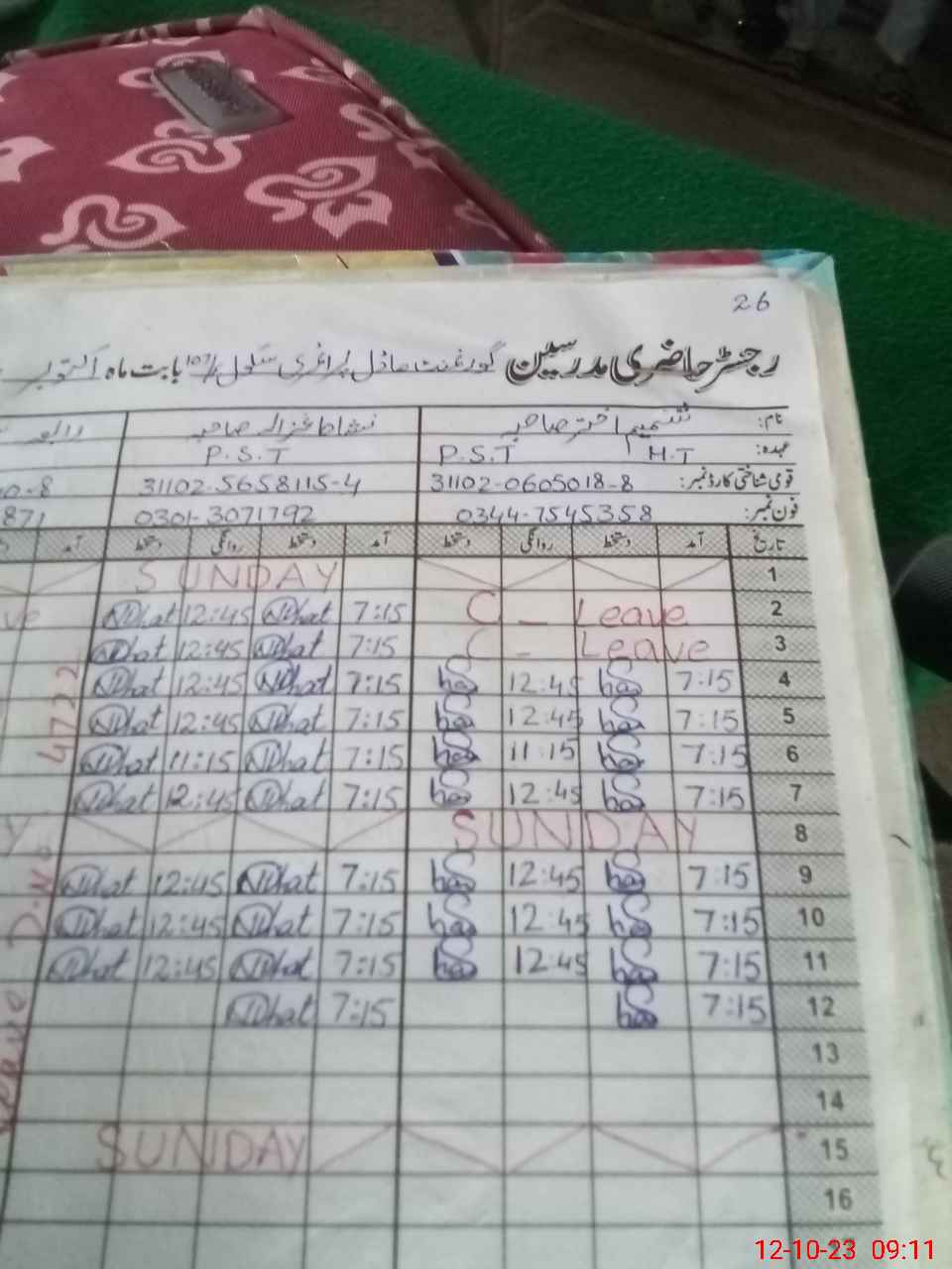 | Name: Sh**** Ak**** Designation: (School Headmaster's/Headmistress's) PST Phone/Cell Number: 03**** |