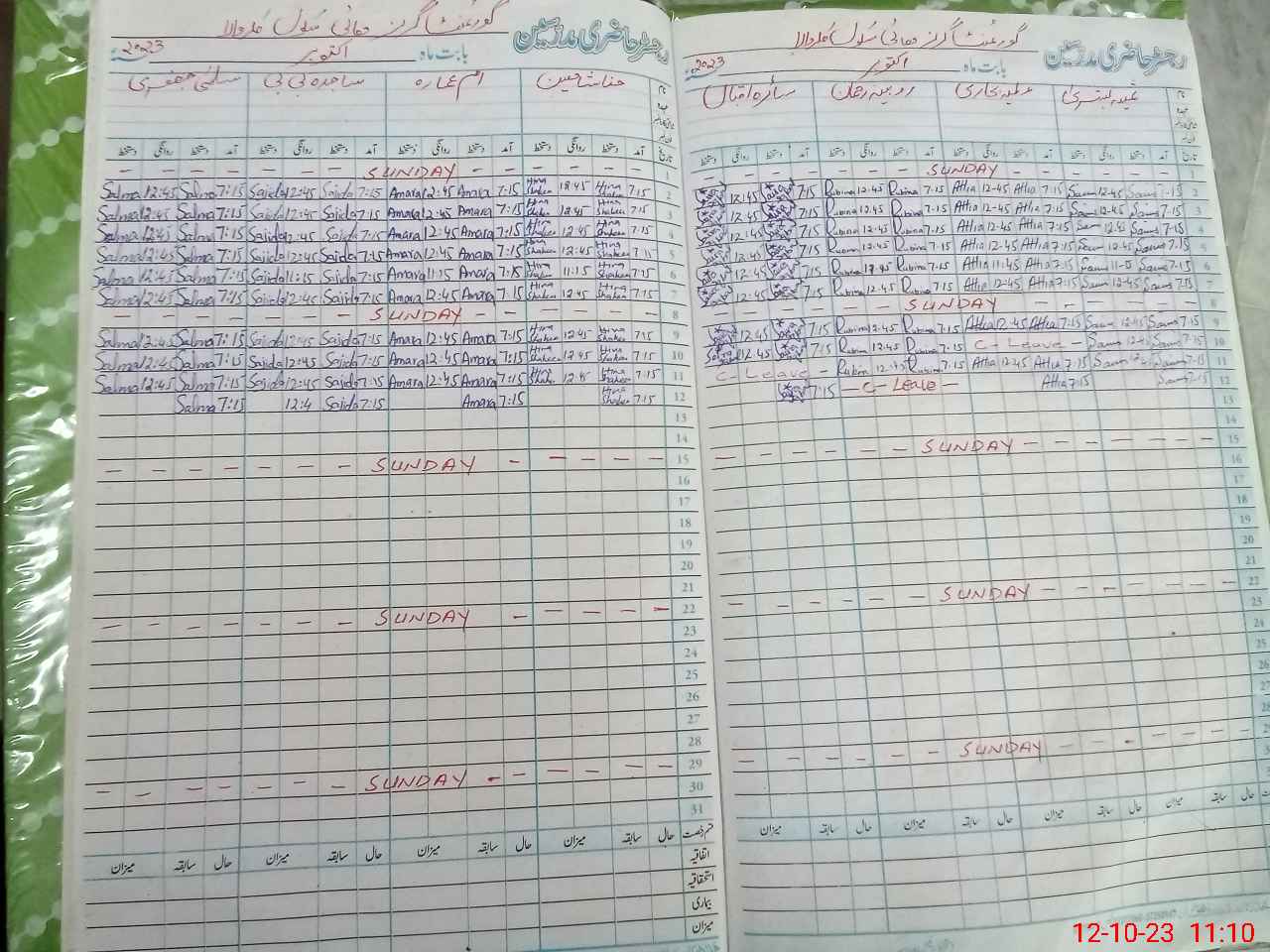| CNIC | Full Name | Designation | R/C | Absence During Last Calender Month |