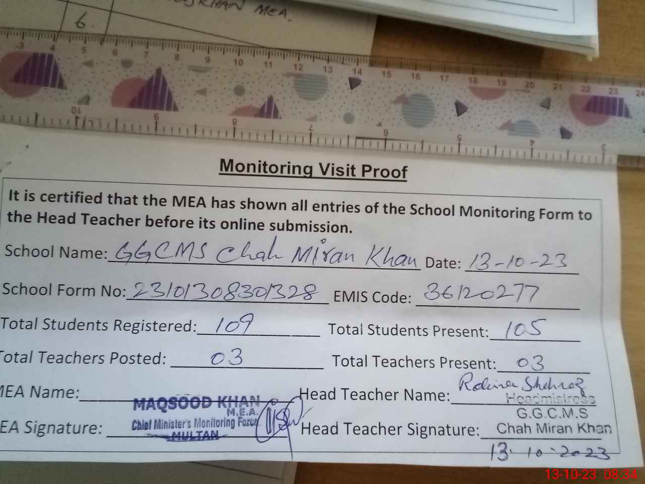 | EMIS Code: 36120277 | Name of School: GGCMS CHAH MIRAN KHAN | |||